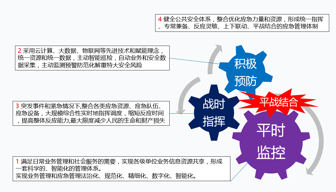 應(yīng)急指揮平臺機遇前所未有:把分散于各有關(guān)部門的應(yīng)急資源和力量整合起來,形成統(tǒng)一高效的應(yīng)急管理體系,全面提升我國防災(zāi)減災(zāi)救災(zāi)應(yīng)急能力,實現(xiàn)應(yīng)急管理體系和能力現(xiàn)代化,全力保護好群眾生命財產(chǎn)安全和社會穩(wěn)定。
